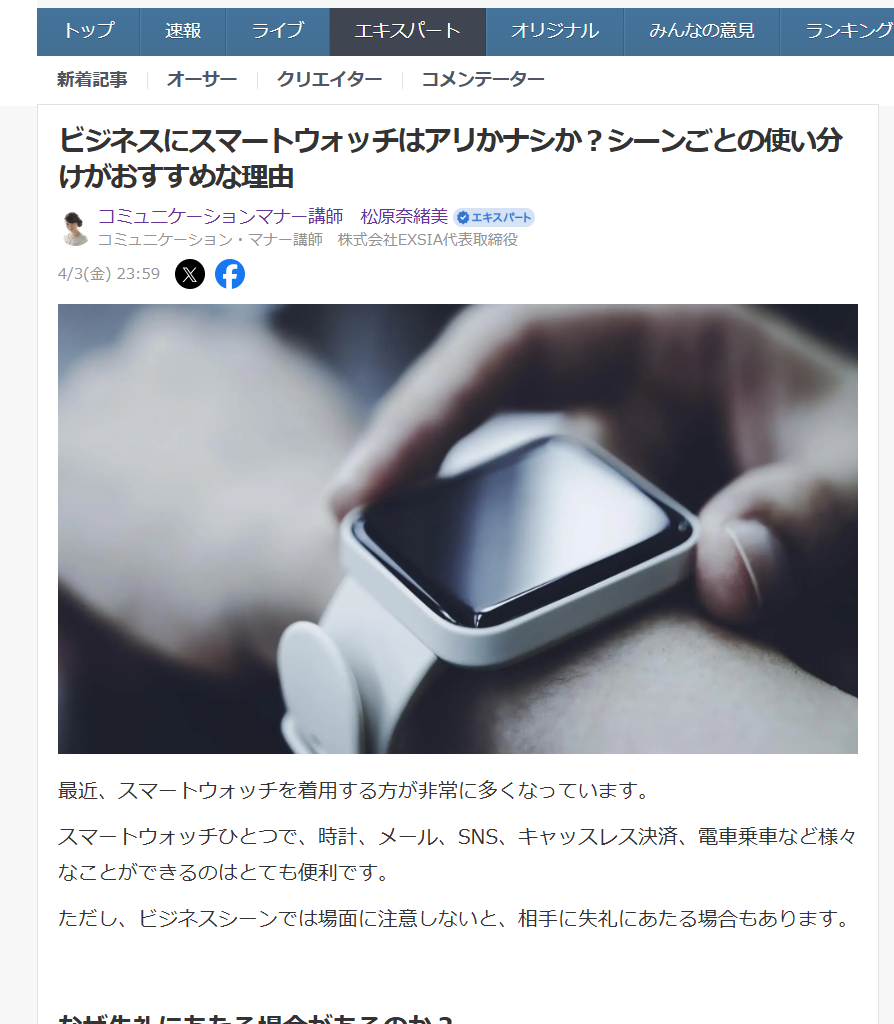 トップ > ブログ > Yahoo!ニュース記事「性格は所作に現れる!所作を意識して自分の価値を上げる方法」